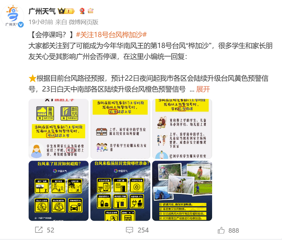 今年第18号台风“桦加沙”已于9月21日上午加强为超强台风级,其来势汹汹,行进路径备受关注。许多学生和家长十分关心,受 “桦加沙” 影响,广州是否会停课?