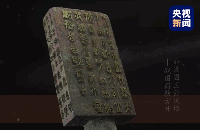 △战国·商鞅方升,底部有40字铭文:“廿六年,皇帝尽并兼天下诸侯,黔首大安,立号为皇帝。乃诏丞相状(隗状)、绾(王绾):法度量则不一歉(嫌)疑者,皆明一之。”上海博物馆藏
