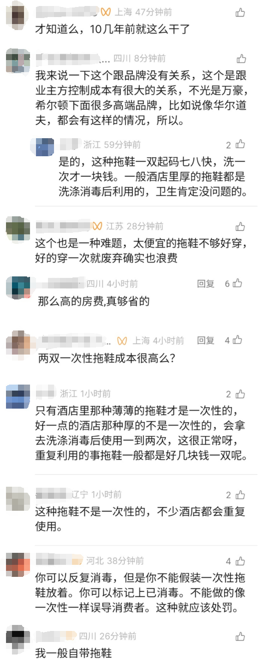 不过,也有网友觉得,只要卫生消毒过关且提前告知,能接受拖鞋重复利用。