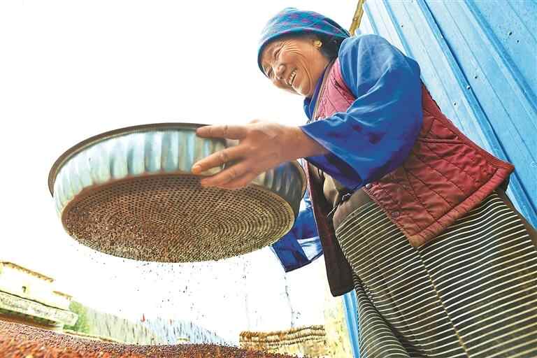 拉萨市墨竹工卡县唐加乡莫冲村村民正在筛菜籽。本报记者 旦增兰泽 本报通讯员 洛克摄