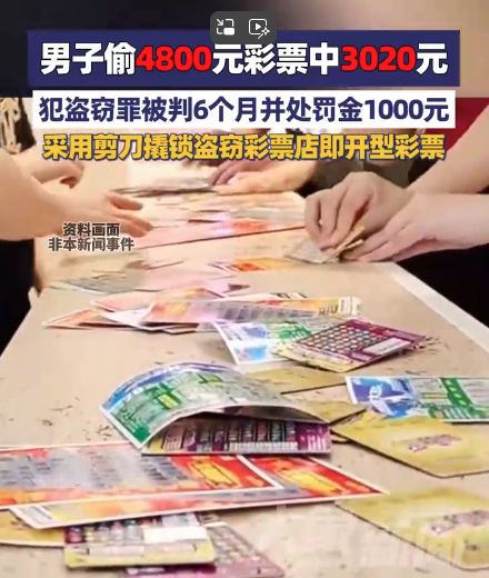 9月20日,记者从天津高法获悉:2025年3月30日,阿强在对南开区某商场负一层进行安全巡视时,趁无人之机,采用剪刀撬锁的方式盗窃某彩票店柜台内放置的即开型彩票1本,面值共计人民币600元。