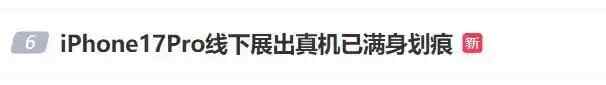 9月19日,iPhone 17系列新机正式开售。首发不久,有第一批拿到新机的网友已开启吐槽模式,在社交平台上称新机刚开箱就出现划痕、凹陷等品控问题。有网友表示,1万多的新机连数据还没传,就发现iPhone 17 Pro银色款边框出现磕痕瑕疵,已联系客服想要换货。