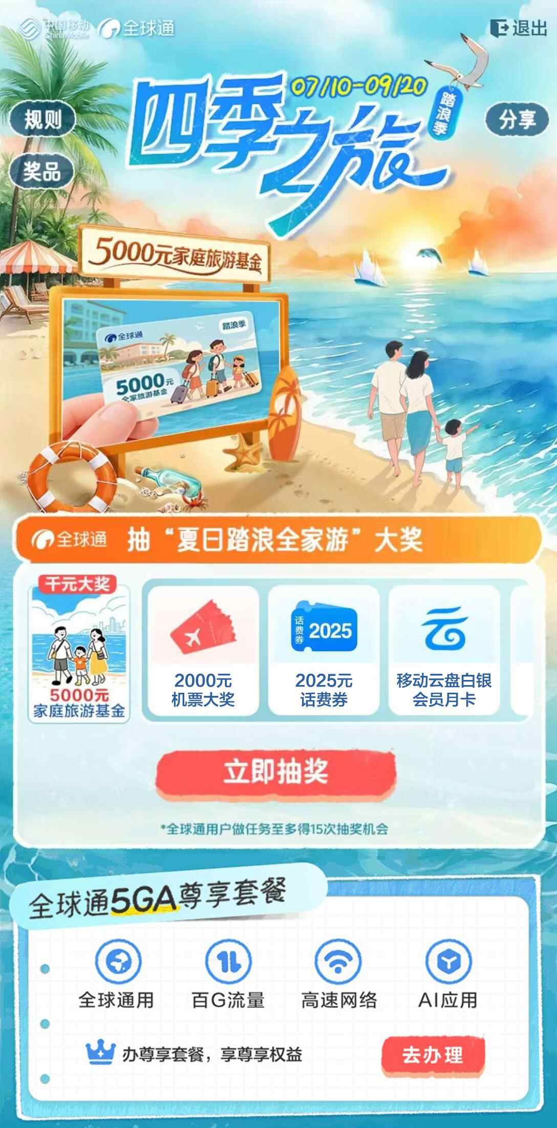 全球通四季之旅踏浪季只剩最后1天啦!!