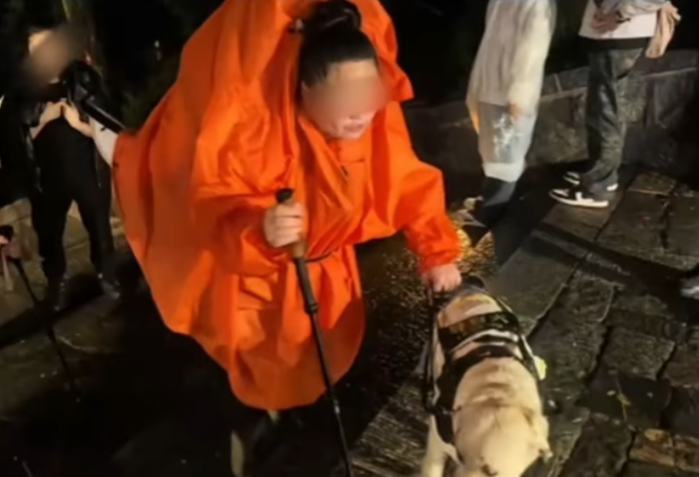 网友指出,这对夫妻漠视导盲犬,自己遮得严严实实却让导盲犬淋雨,还有人指出,爬山这种运动对导盲犬的膝盖伤害极大。