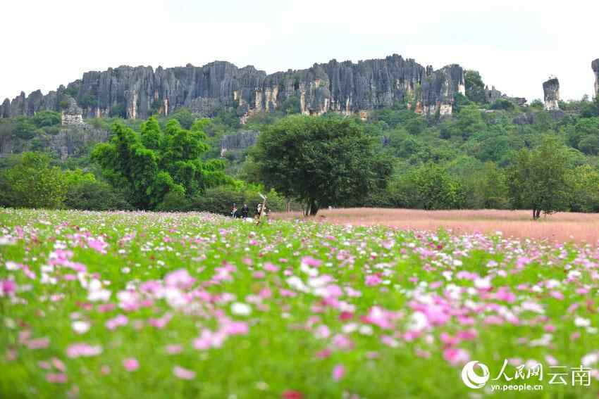 乃古石林风景区内波斯菊盛开。赵国洪摄
