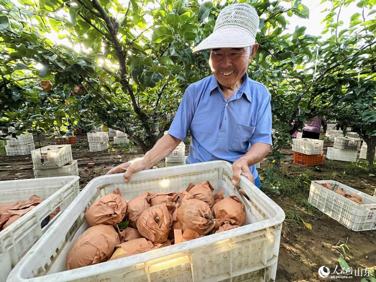刚“下树”的秋月梨装满果筐。人民网 乔姝摄