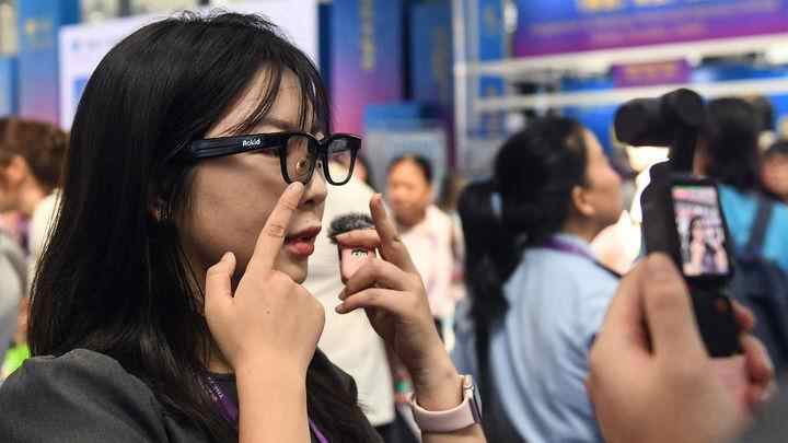 2025年9月17日,在广西南宁国际会展中心,参观者在体验AI眼镜。新华社记者 周汀鹭 摄