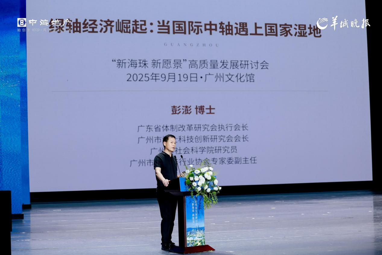 广东省体制改革研究会执行会长彭澎在《绿轴经济崛起:当国际中轴遇上国家湿地》的演讲中,通过纽约、伦敦等国际案例对比,深刻阐述了广州“中轴+湿地”模式的全球稀缺性。他强调:“这不是简单的空间叠加,而是要在湿地保护红线内发展绿色产业,如芯片设计、数字文创等知识密集型业态”,并提出,“纽约中央公园与曼哈顿的共生,是工业时代的经典;而广州‘中轴+湿地’的叠合,将定义数字时代的城央生态经济新模式。”