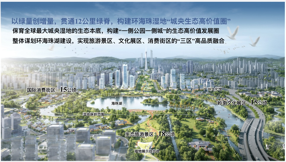 这是广州城市史上极具标志性的一幕:一条全球稀缺的“中轴+湿地”超级格局,在千万级人口的超大城市中心区被正式提出。这不仅是海珠的战略进化,更是广州面向全球递出的生态答卷。