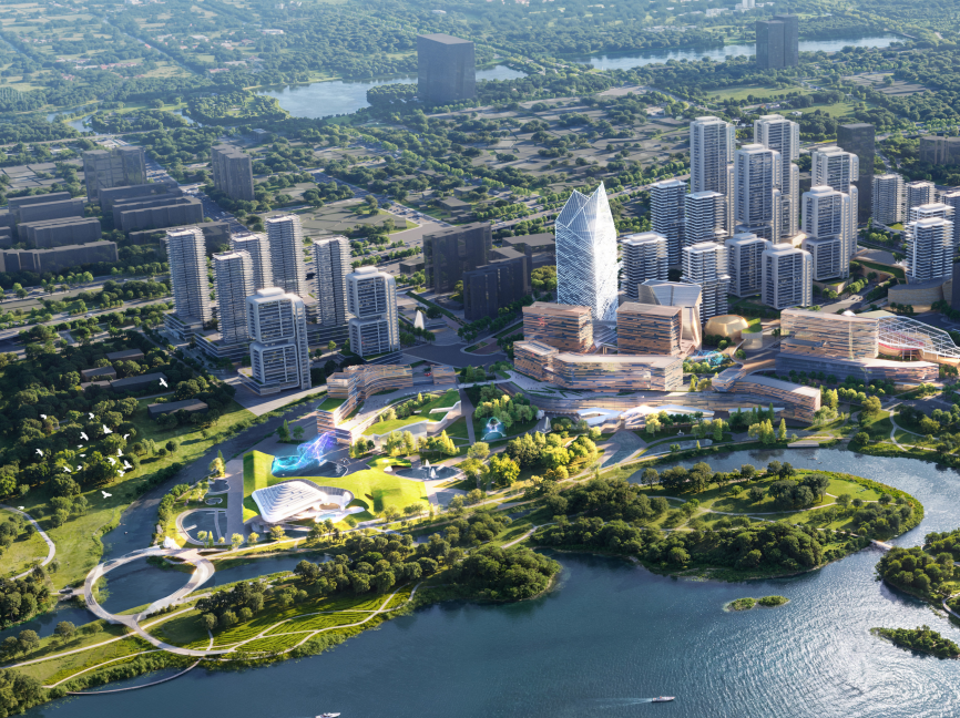 规划以“世界城央水岸先锋、岭南人文社区典范、花城时尚科技标杆”为愿景,构建文化、数字、绿色经济三轮驱动的特色产业体系。同时,打破海珠湖公园边界,形成全域蓝绿生境,并以一塔镇领三涌、一湾焕活湖岸,打造环湖五瓣簇心的生态空间结构。