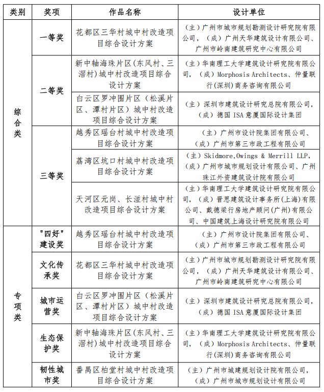 由广州市住房和城乡建设局主办、市城市更新协会协办的广州市城中村改造综合设计方案竞赛(以下简称“设计竞赛”)结果出炉。