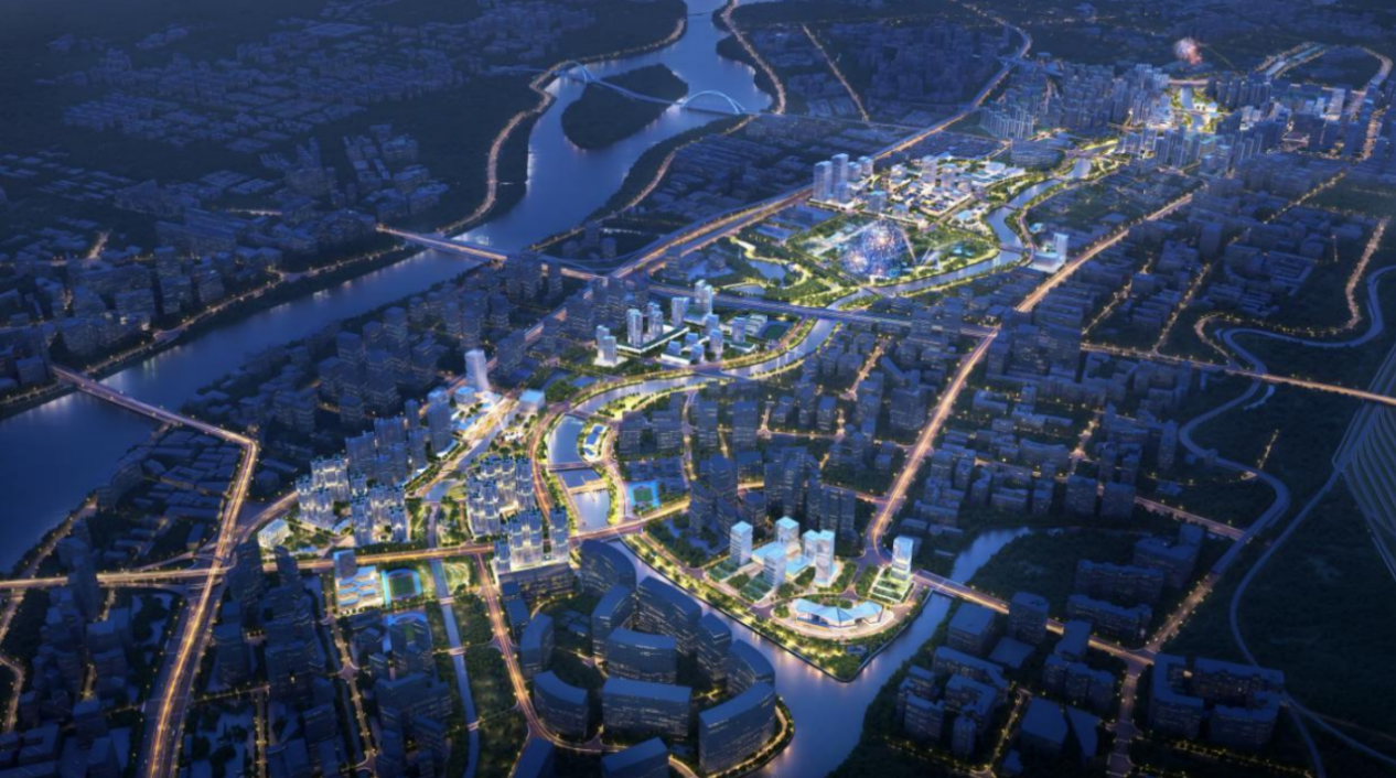 规划以田园、河涌、湿地等生态要素为基础,传承岭南水乡洲岛基因,通过江湾田园生态洼地、滨水调蓄绿廊、海绵公园、组团雨水花园等四级设施构建弹性海绵生态系统;在社区建设、建筑设计、管网布局中运用生态手段,构建绿色低碳智慧科技新场景。