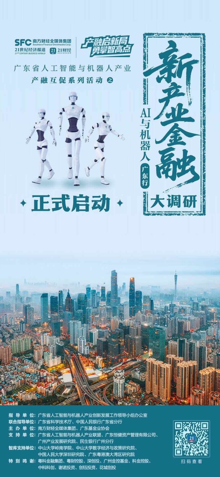 同日,由广东省人工智能与机器人产业创新发展工作领导小组办公室、广东省科技厅、中国人民银行广东省分行指导,南方财经全媒体集团、广东基金业协会共同发起的“产融启新局勇攀智高点”——广东省人工智能与机器人产业产融互促系列活动正式启动,同步开启系列活动之深度调研——“新产业金融大调研・AI与机器人(广东行)”。