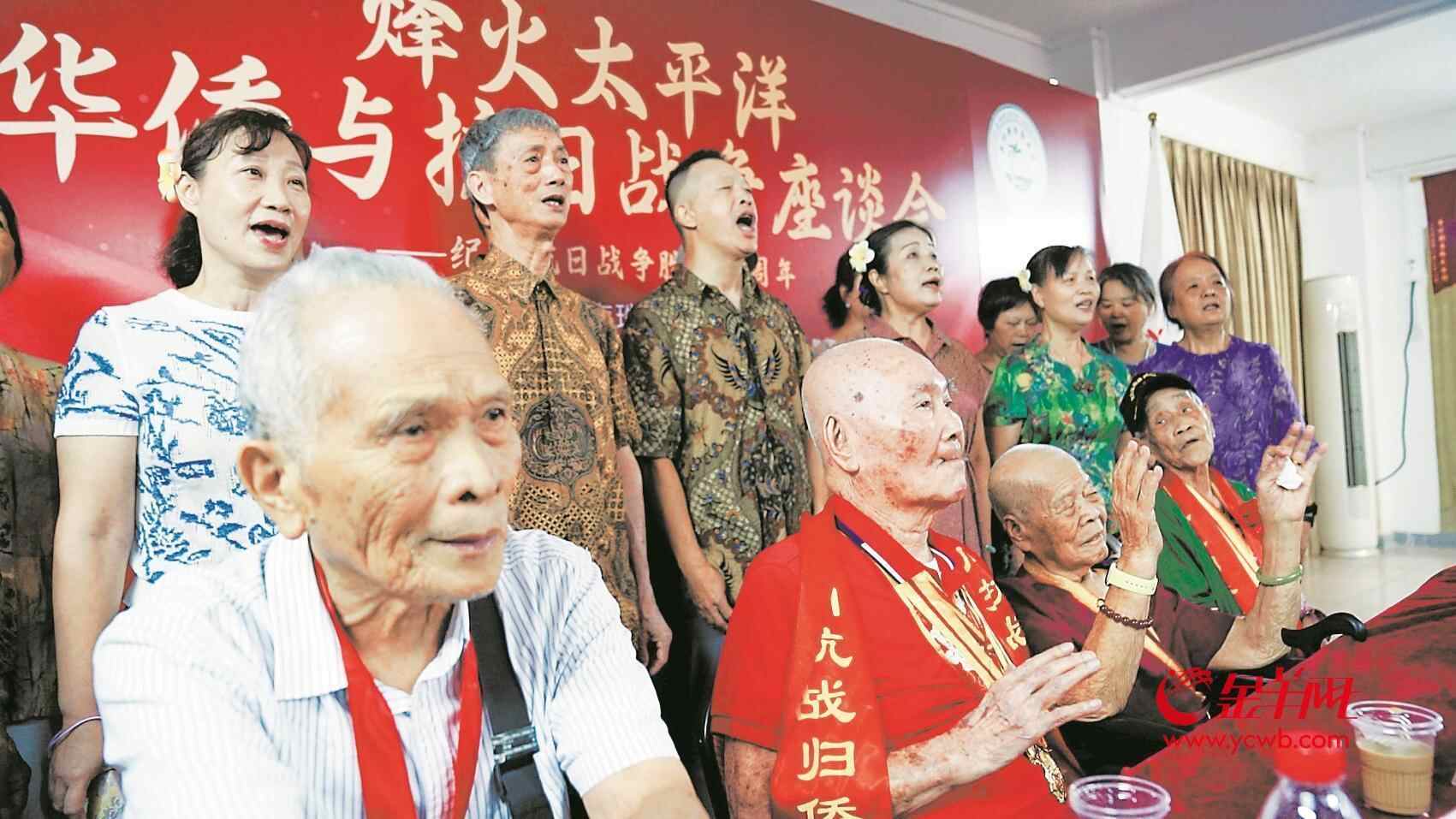 参会的40余名侨胞中,100岁左右的老人就有4位——陈亚来(101岁)、钟炳聪(曾化名陈惠芳,100岁)、毛金莲(98岁)、邝常(96岁)。80多年前,他们都曾在南洋参加抗日战争。现场还汇集了多位马来亚归侨抗日老战士的后人,不少人从香港专程赶来。