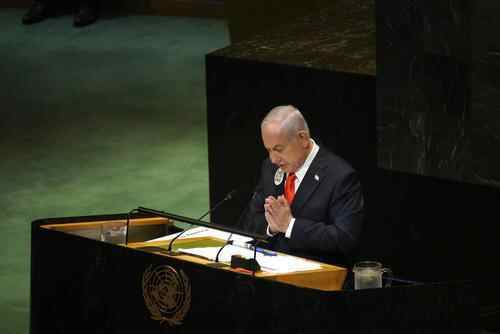 以色列总理内塔尼亚胡26日在联合国大会一般性辩论发言。