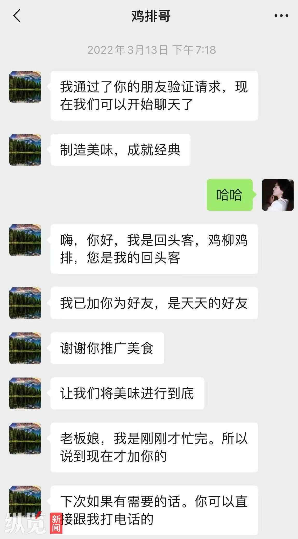 购买了几次鸡排之后,付女士添加了“鸡排哥”的微信。“制造美味,成就经典”“我已加你为好友,我们是天天的好友”“让我们将美食进行到底”等充满阳光、幽默的语言频频出现在付女士和“鸡排哥”日常交流中,让她感觉“聊天也是一种享受”。付女士回忆,“鸡排哥”也不是天天快乐,偶尔也有烦恼,“去年我听他讲他们的房子还是租的,但他依然这么乐观,有活力,很积极,真是很感染人。”