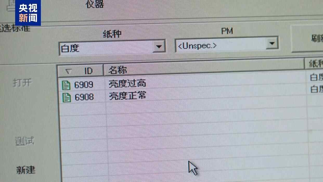 上海市质量监督检验技术研究院有限公司轻化所高级工程师 肖建芳:这两个本子,通过肉眼可以看到上面这一本比较黄,下面这一本比较白,白得发亮。我们通过白度仪检测,看一下这两个本子的亮度值如何。