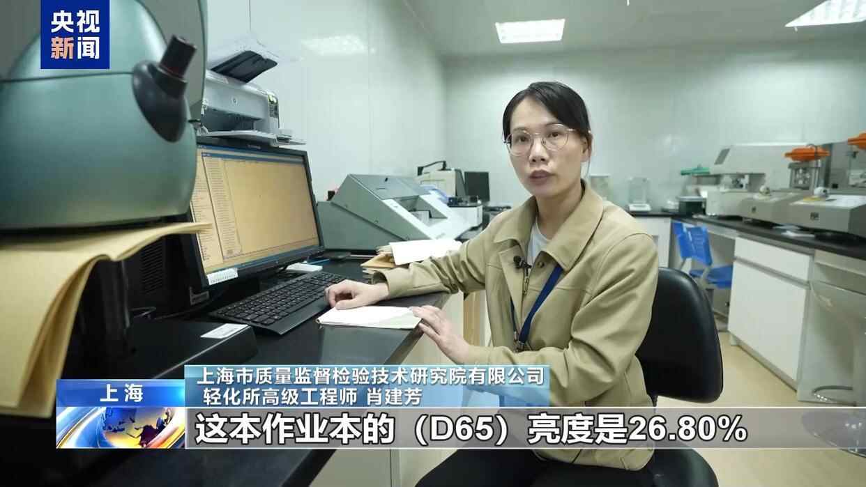 上海市质量监督检验技术研究院有限公司轻化所检测室主任 陈静茹:小朋友在做作业的过程中,纸张的亮度过高,易造成视觉疲劳,对眼睛的刺激比较大,长期接触对视力是有不利影响。
