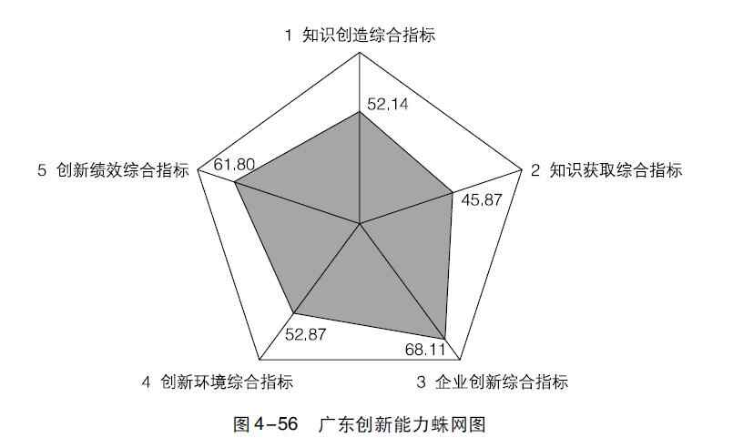 创新能力指标5个维度中,广东在各方面的表现均较为突出,其中,企业创新和创新环境排名连续两年排第1位,与综合值排名持平。知识创造和知识获取排名与上年持平,分别排第2位和第4位,均低于综合指标排名。不过,创新绩效排名较上年下降1位,排第2位,低于综合指标排名。