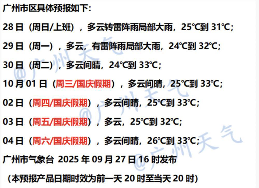 广东省气象台9月27日预计,广东海陆局地将因“博罗依”的影响,27日夜间起风雨趋明显。预计27日夜间至28日,广东西部海面和琼州海峡风力加大到7~8级阵风9~10级,雷州半岛有7~9级阵风,粤西市县有大雨到暴雨局部大暴雨。预计29日白天起,广东风雨明显减弱。结合广州市气象台9月27日预计,28日至29日广州受“博罗依”外围环流和副热带高压边缘不稳定影响,有雷阵雨,局部雨势较大并伴有8级左右短时大风。预计30日起随着副热带高压加强控制,广州以多云间晴为主,天气较为炎热。