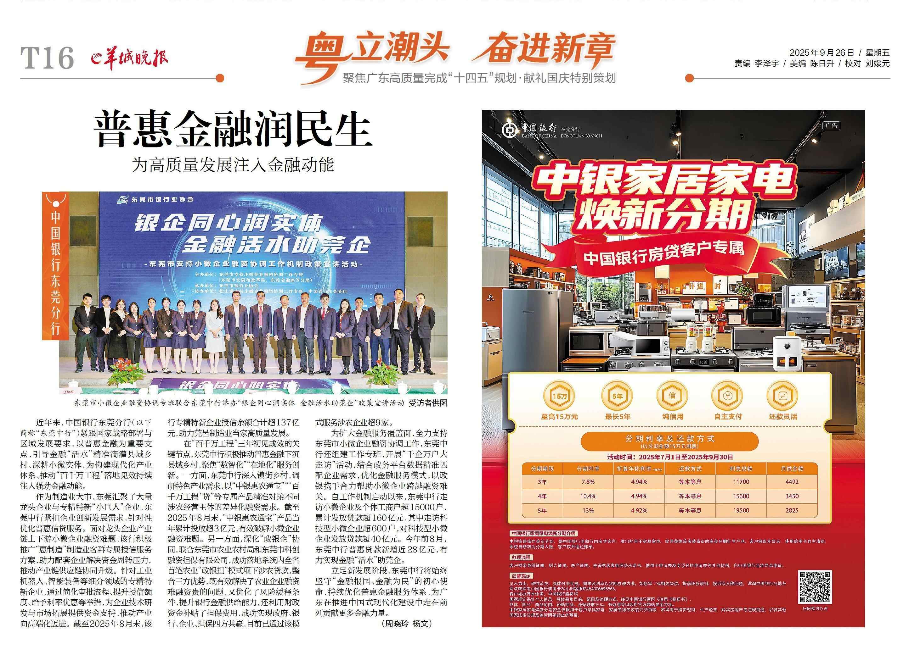 近年来,中国银行东莞分行(以下简称“东莞中行”)紧跟国家战略部署与区域发展要求,以普惠金融为重要支点,引导金融“活水”精准滴灌县域乡村、深耕小微实体,为构建现代化产业体系、推动“百千万工程”落地见效持续注入强劲金融动能。