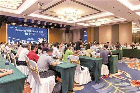 9月13日,第十届东莞荷花文学榜盛典在桥头镇举行。现场嘉宾云集,中华文学基金会理事长、中国作家协会主席团委员施战军;《中国作家》主编李云雷;广东省作家协会主席,中山大学中文系教授、博士生导师谢有顺;《中国校园文学》副主编、文学博士、评论家王昉等约120人齐聚一堂,共同见证文学之花绚烂绽放。