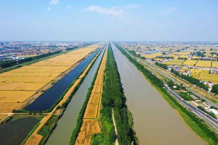 苏北灌溉总渠(左)与淮河入海水道(右)