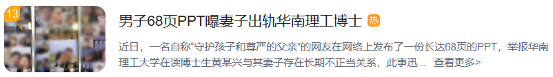 近日,一名自称“守护孩子和尊严的父亲”的网友在网络上发布了一份长达68页的PPT,举报华南理工大学在读博士生黄某兴与其妻子存在长期不正当关系,此事迅速引发关注。