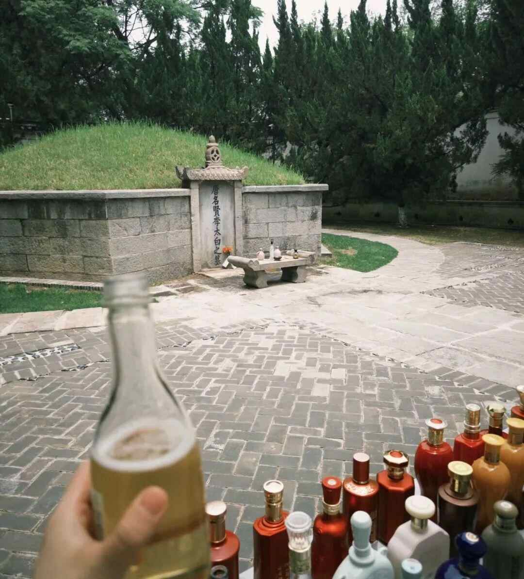鲜花、美酒和写给古人的信件,成了最常见的供品。以李白为例,大家都知道他爱饮酒,常在长安酒肆与同好对饮,醉酒而归。所以在他的墓碑前,白酒、红酒、啤酒、清酒一应俱全,连年轻人偏爱的果酒也被摆上。从酒的小样(迷你酒)到大酒坛子,琳琅满目,颇有要办“酒类博览会”的架势。
