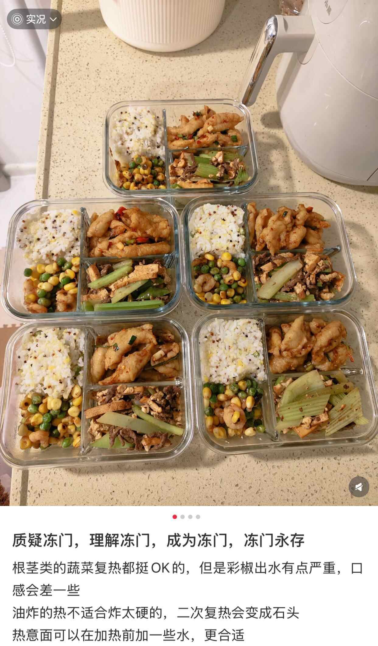 一堆密封盒在冰箱里摞成山,打开一看,一份有肉有菜有米饭的便当就这样被冻了起来。想吃的时候,直接加热,花不了5分钟,搞定一餐饭,果然这届年轻人“敢想敢干”,闷头在家里做起了预制菜。