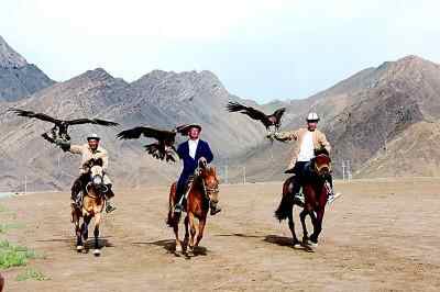 新疆阿合奇县苏木塔什乡驯鹰文化旅游景区的柯尔克孜族驯鹰表演。本报记者 刘宇航摄