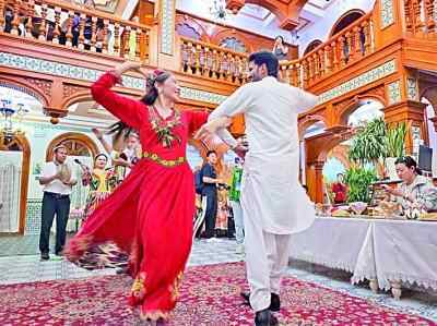 新疆喀什古城一家民宿内的歌舞演出。本报记者 范天培摄