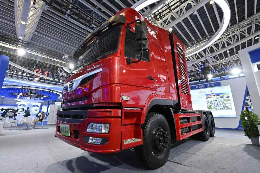 这是2024年9月11日在2024中国(太原)国际能源产业博览会上拍摄的美锦氢能重卡。新华社记者 杨晨光 摄