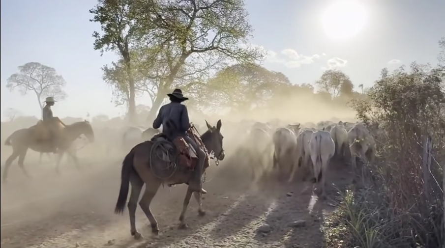 随着夕阳下牛仔驱赶上千头牛群的画面出现,俞孔坚解说到,牧场正一点点吞噬这片水乡。曾经是无数动物的天堂的湿地,如今已经被围栏切割,被牧场取代。这里表面宁静,却暗藏危机,“尘土与余晖交织成一幅壮丽而悲怆的画卷,这片乐园正悄然改变。”