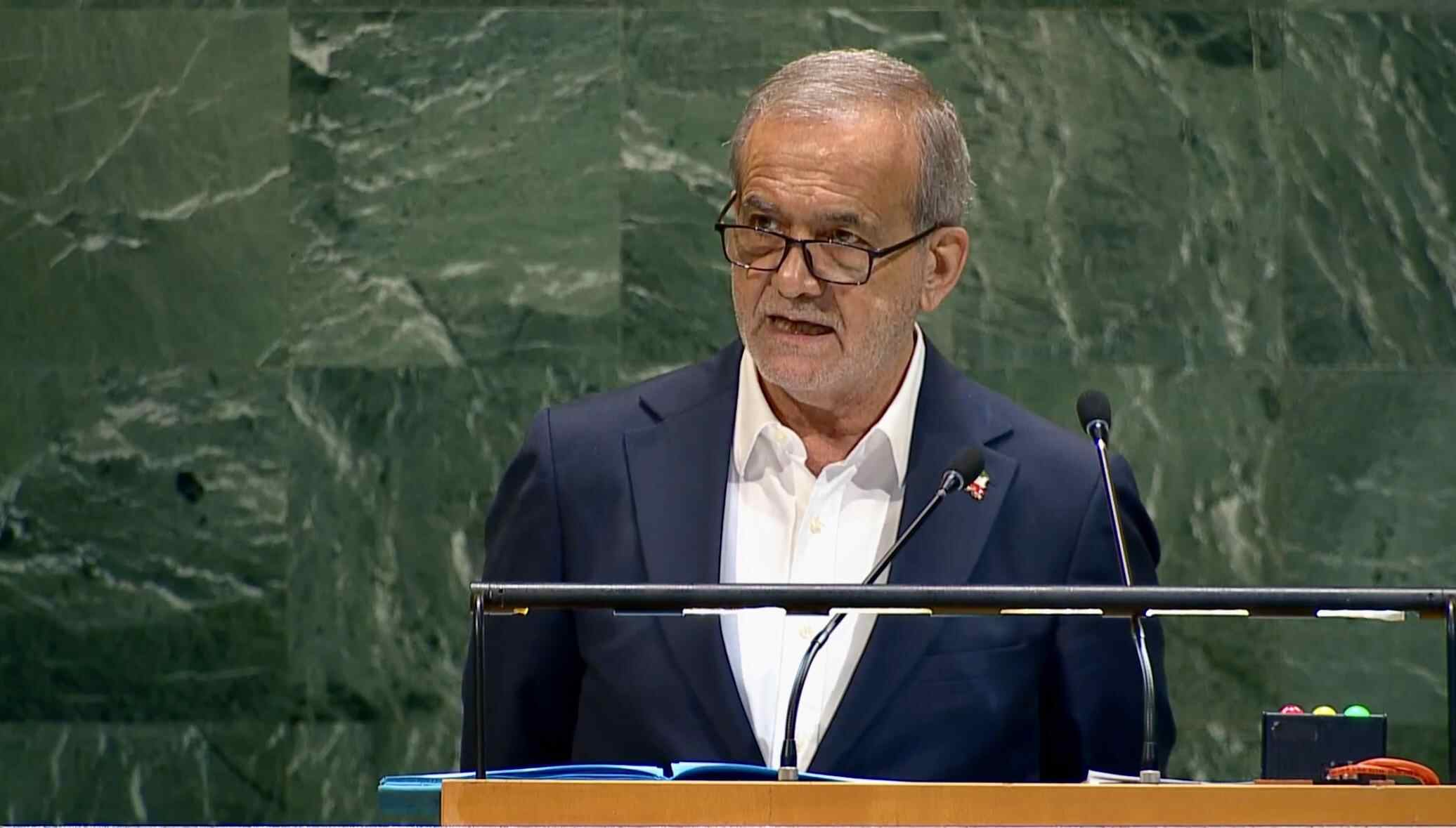 当地时间9月24日,伊朗总统佩泽希齐扬在第80届联合国大会一般性辩论上发言时重申,伊朗不会制造原子弹,也不会追求拥有核武器及大规模杀伤性武器。