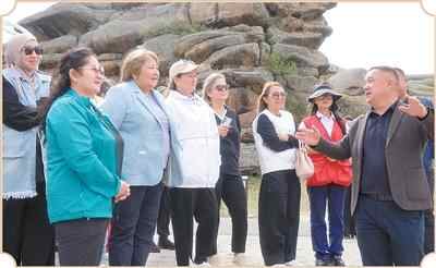8月,哈萨克斯坦的妇女代表团来到阿勒泰地区,参访吉木乃县草原石城景区。