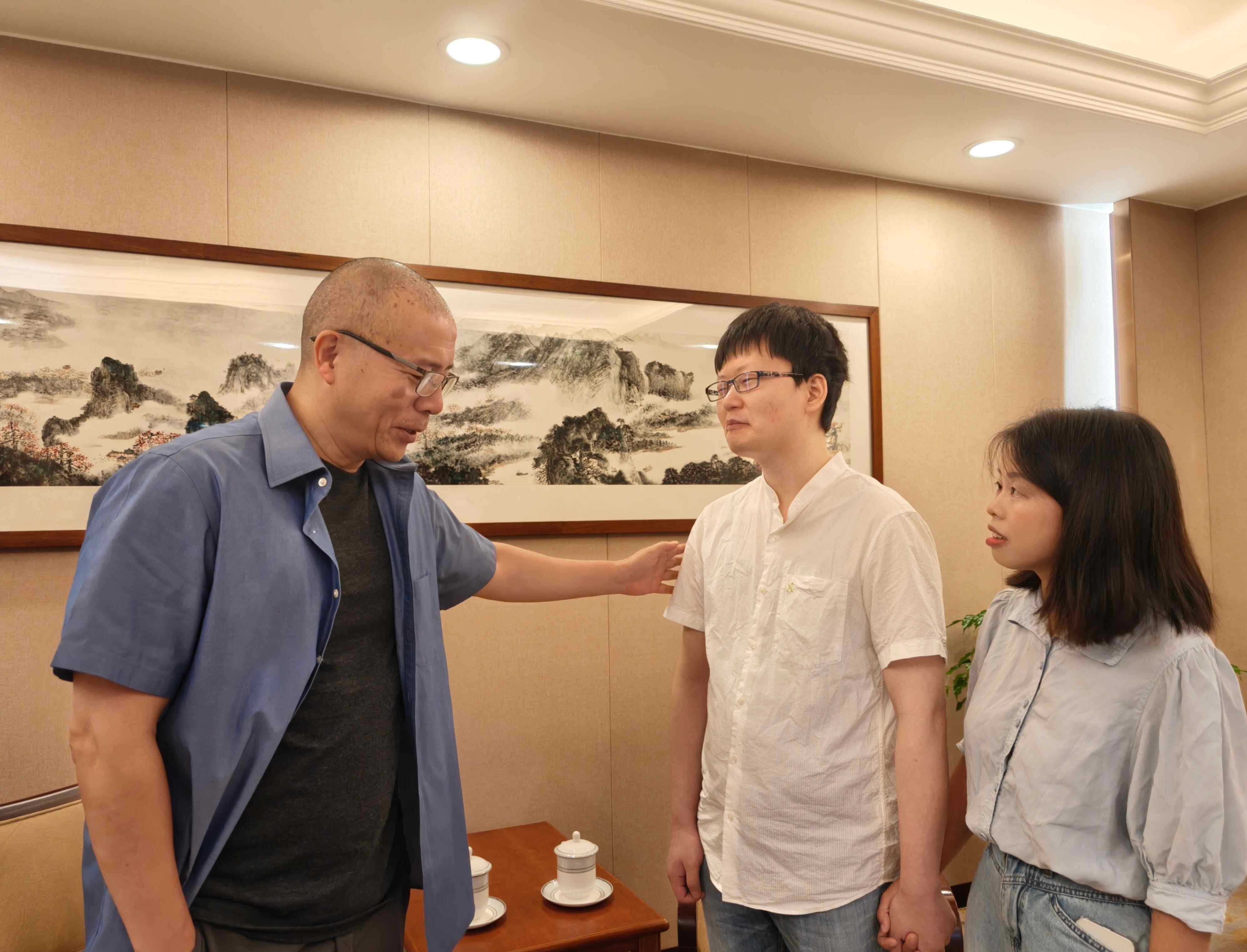 谈话过程中,毕飞宇注意到吴可彦的双手。他伸手轻握住吴可彦的右手,在关节处揉按了几下。