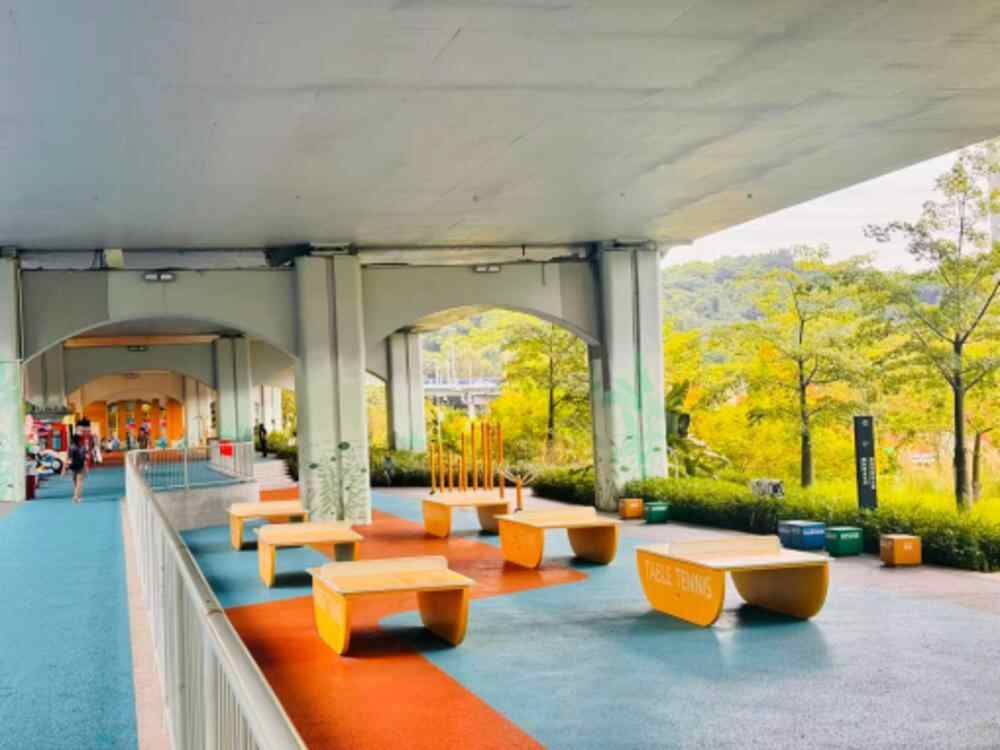 抬眼望去,过去曾被遗忘的桥下灰空间,如今已蜕变为融合生态、运动与科普的儿童乐园。利用高架桥体的天然遮荫,公园内设置了分龄游乐区、亲水平台、篮球场和羽毛球场,既避日晒雨淋,又保留自然通风。清晨,老人在此散步锻炼;午后,孩童在沙池、滑梯间奔跑欢笑;傍晚,学生放学后顺路来此打一场乒乓球。公园内还设有节水科普栏、观鸟点,让儿童在游戏中感知自然奥秘。这种“车站+公园”的组合,不仅解决了城市“遛娃难”的痛点,更将通勤路径转化为休闲动线,让日常出行充满趣味。