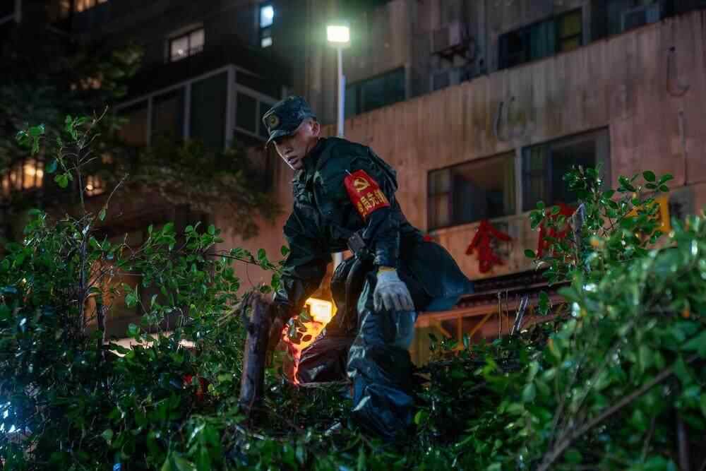 武警广东总队官兵连夜投入救援、持续奋战救灾确保人民生命财产安全。在台风登陆的阳江市,城市多处街道被狂风暴雨吹倒的树木、淤泥和垃圾覆盖,严重影响了交通出行和城市秩序。