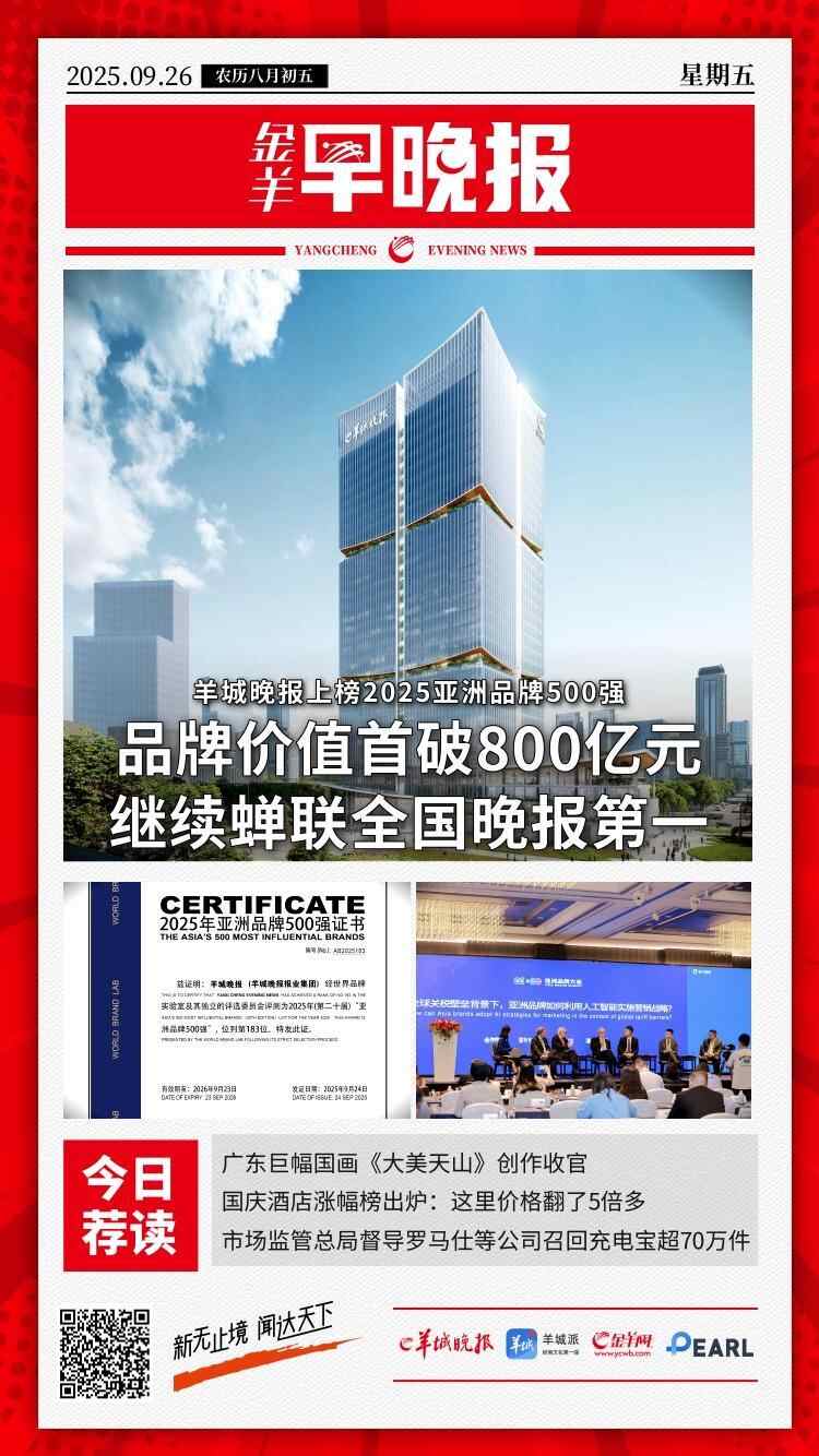 【金羊早晚报】品牌价值首破800亿元!羊城晚报上榜2025亚洲品牌500强