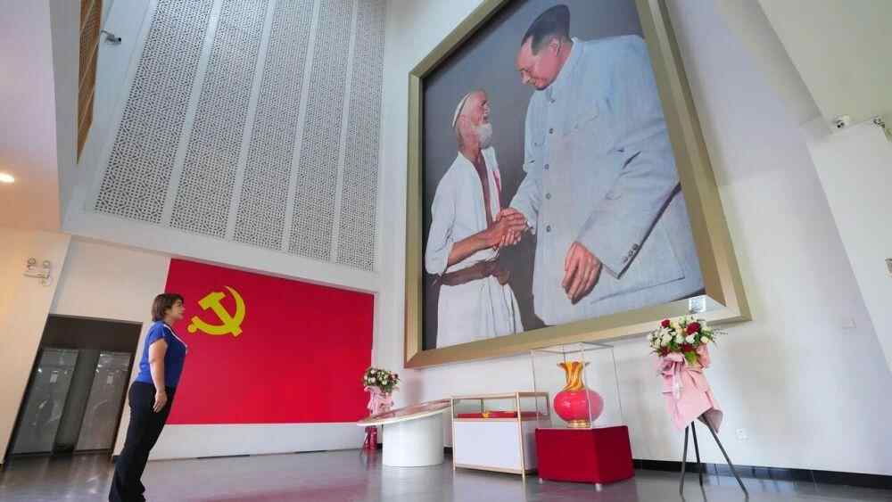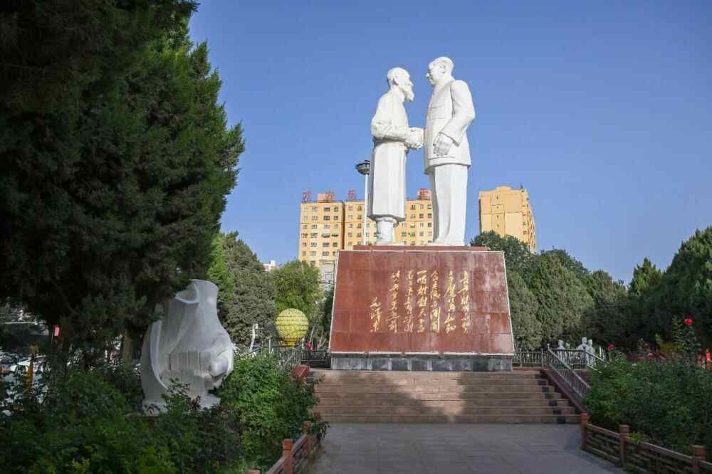在新疆和田地区于田县拍摄的毛主席接见库尔班·吐鲁木塑像(9月12日摄)。新华每日电讯记者丁磊摄