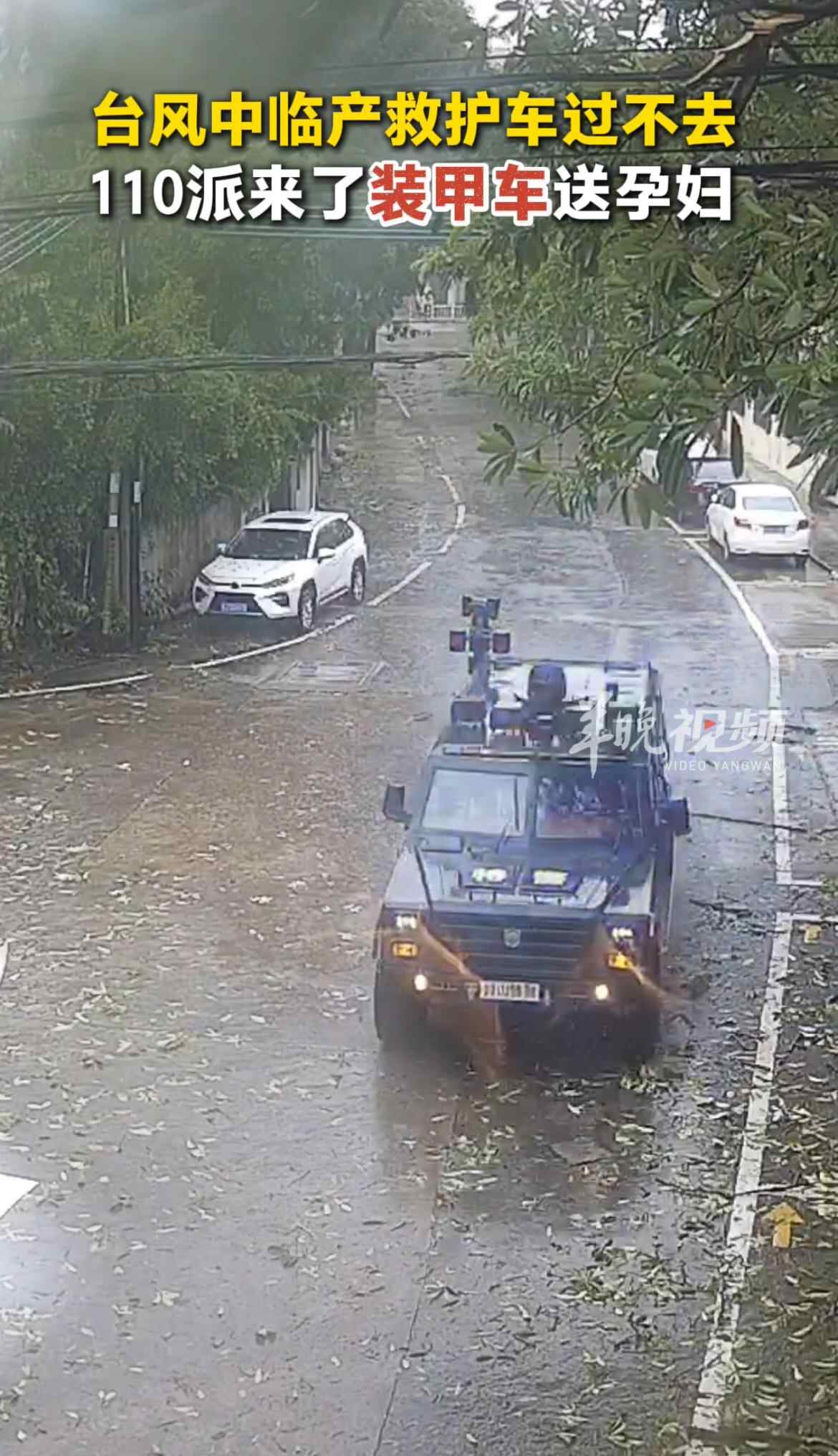 9月24日,江门台山市公安局接到120紧急求助,一孕妇临产,急需送医。受台风“桦加沙”影响,道路多处树木倒伏,阻断交通,救护车无法通行。紧急时刻,110派了特警装甲车接上医护人员,途中,民警辅警冒着暴风雨清障,为孕妇开辟生命通道。孕妇被平安转移至装甲车,并顺利送达医院。