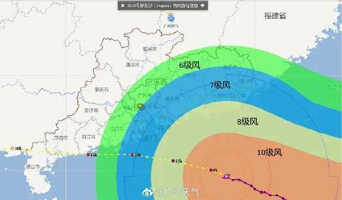 台风“桦加沙”风圈示意图 图/新浪微博@广州天气