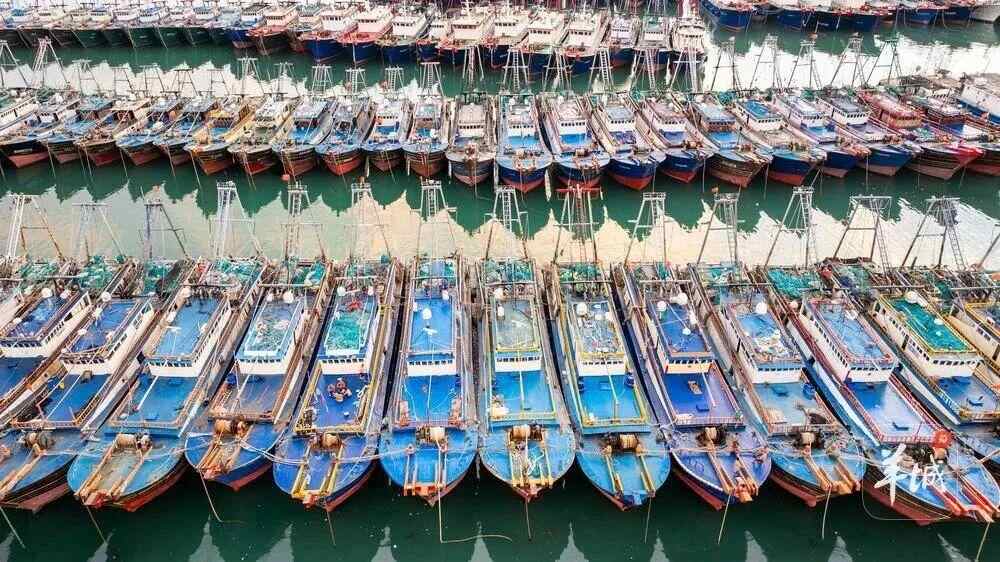 闸坡渔港内,回港避风的渔船整齐地停放着。“目前,这里已停有广东省内渔船540多艘、省外渔船约300艘。我们要求所有回港避风的渔船加固锚缆、人员上岸。”闸坡海洋综合执法大队综合协调组组长潘智聪指着远处的渔船,语气笃定。