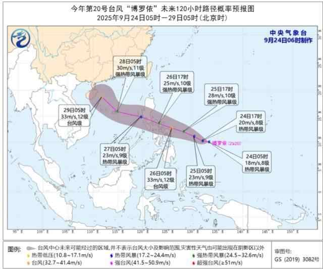 同时,在西北太平洋上,今年第20号台风“博罗依”在24日5时生成,强度为热带风暴级(8级)。“博罗依”这一名字由泰国提供,意指一种泰式甜品。
