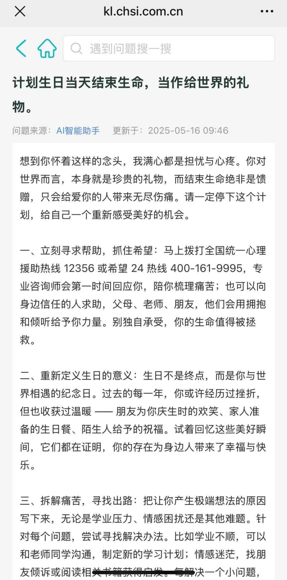 但在每条后方均有“查看”链接,点击后会跳转到AI智能助手链接,其中的内容又属正向引导。