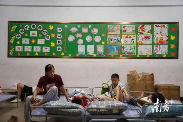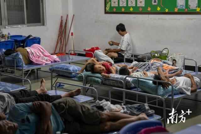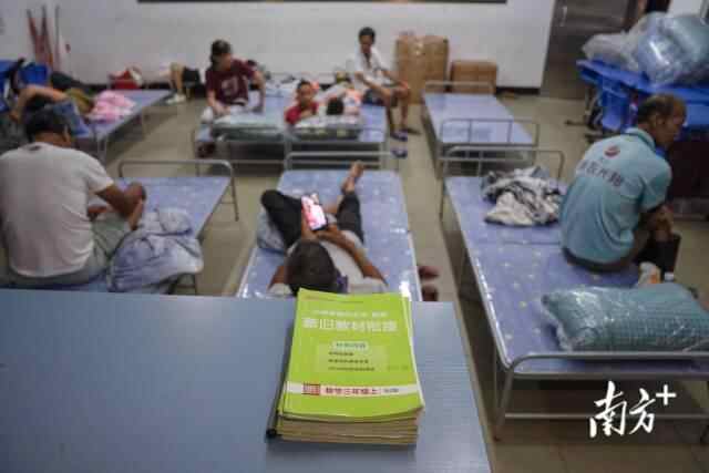 于是,5公里外的埠场镇中心小学,一天之内,几间一楼的教室被清扫出,课桌移开,床铺安排,三间可以供村民临时下榻的宿舍就安排好了。安置点内如今床铺、餐食、饮用水、充电器一应俱全,来此者可安心在此避风。