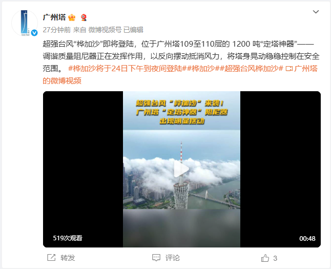 “高层建筑的框架结构在设计时就会考虑台风因素,超过百米的建筑有一些还会安装阻尼器防风,楼体晃动也并不代表楼体就会不安全,但对居民来说,晃动起来体感会比较不适。”