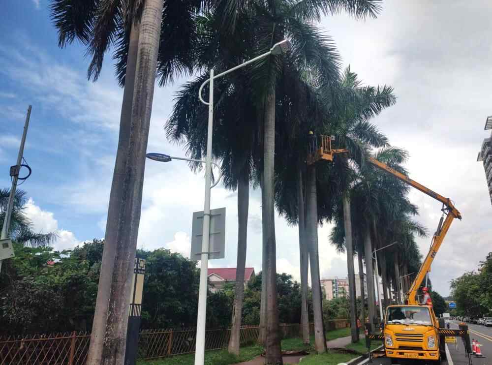 区林业和园林局启动三级责任体系,城区绿化应急抢险队、9支林业站应急分队以及2支社会支援队伍共150人已24小时待命,高空作业车、吊机、运输车等物资设备全部准备就绪。同时,对城区5万株行道树和全区559株古树名木进行全面排查,重点对10条城区主干道行道树进行防风疏枝修剪,近段时间完成树木修剪约10000株。