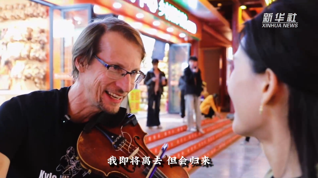 第八届丝绸之路(敦煌)国际文化博览会期间,美国小提琴演奏家凯尔·迪灵汉姆带领的美国俄克拉何马州乐队“马掌路”在敦煌夜市带来了一场“快闪”表演。向新华社记者周阳演奏了融入敦煌元素的音乐作品后,他说:“我想找到一种方式,把‘俄克拉何马州’放到丝绸之路上。”
